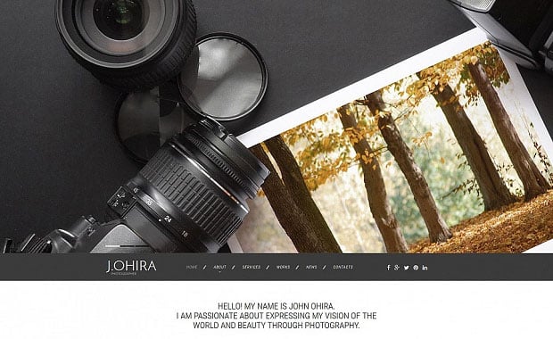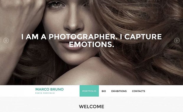 Den zweiten Platz besitzt unser Favorit unter Fotografen: Homepage-Vorlage zum Thema Kreative Fotografie. Die jeweilige Vorlage wurde mit Rücksicht auf die Tendenzen in der Fotowelt entwickelt. Ihr minimalistisches Design lässt Kunden sich voll und ganz auf Fotos konzentrieren und eine eigene Vorstellung von euren Arbeiten bekommen.