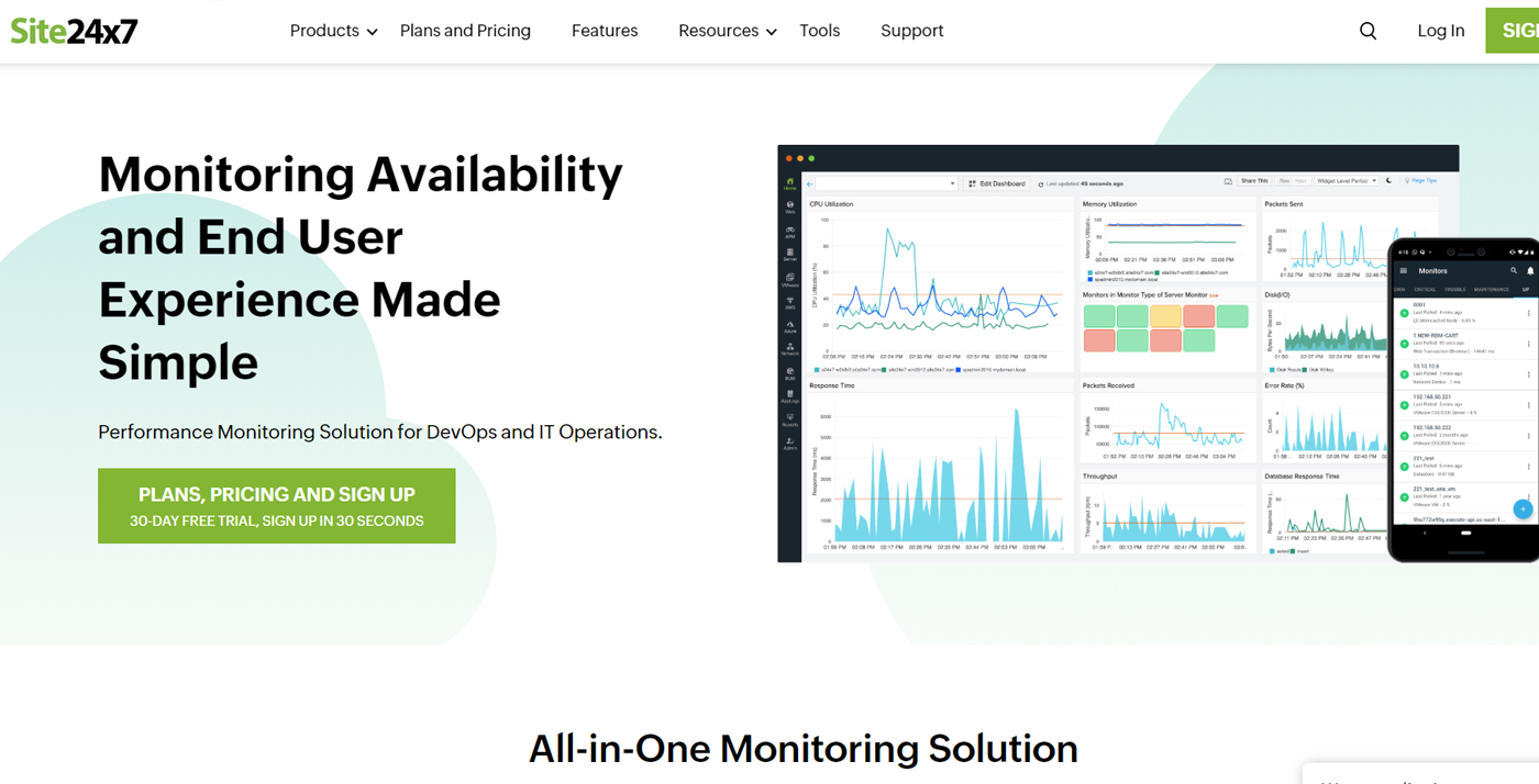 Site24x7 liefert Dir die Informationen über die Leistung Deiner Website. Mit dem Tool kann man nur eine Website überwachen. Die automatische Überprüfung wird jede Stunde durchgeführt. Jedes Mal, wenn etwas schief geht, wirst Du per E-Mail darüber informiert. Darüber hinaus führt das Tool die Server-, Netzwerk- und Benutzererlebnisüberwachung aus.