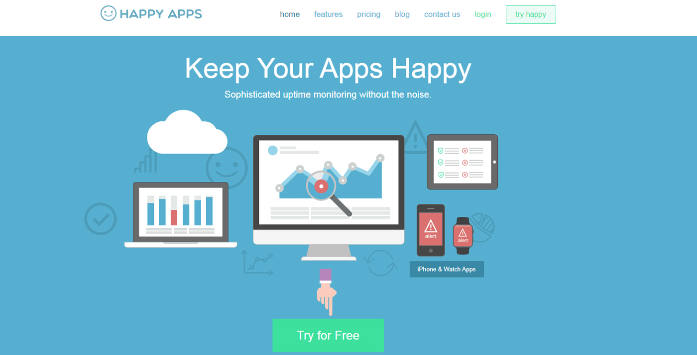 Dieser Service für Website Uptime Monitoring ist ideal für alle, die mit Apps arbeiten. Wenn Du immer über den aktuellen Status der App, ihre Leistung und die möglichen Probleme informiert werden musst, dann ist Happy Apps einfach das,was Du brauchst. Sobald Du das Setup-Programm ausgeführt hast, kannst Du sofort eine Reihe von Überrüfungen durchführen, wie z.B. Datenbanken-, Messaging-, App-Server-,verschiedene benutzerdefinierte Prüfungen, usw.