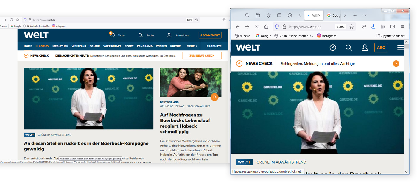 Responsive Design. Wenn du das Browserfenster kleiner machst, müssen sich die Elemente auf der Website in der Größe und Anordnung ändern. Geschieht das nicht, ist die Website nicht responsive gebaut. Dann ist die Website, auf der du gelandet bist, ziemlich alt. Denn Responsive Design ist seit Jahren eine Pflicht für Websites.