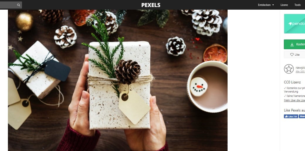 Die Seite für Weihnachtsbilder von Pexels enthält wunderbare kostenlose Weihnachtsbilder und Fotos nach jedem Geschmack. Klassische Abbildungen wie Weihnachtsmann, Weihnachtsbäume, Weihnachtsmütze und viel mehr kannst Du herunterladen. Auf der Seite gibt es auch Information darüber, dass man diese Bilder sogar für kommerzielle Zwecken dank der Lizenzierung unter CCO Lizenz benutzen darf.