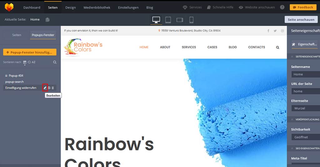 3.Sobald ein neues Popup (oder eine neue Seite) erstellt wurde, solltest du diese wie gewüscht optisch anpassen und das Kontaktformular hinzufügen.