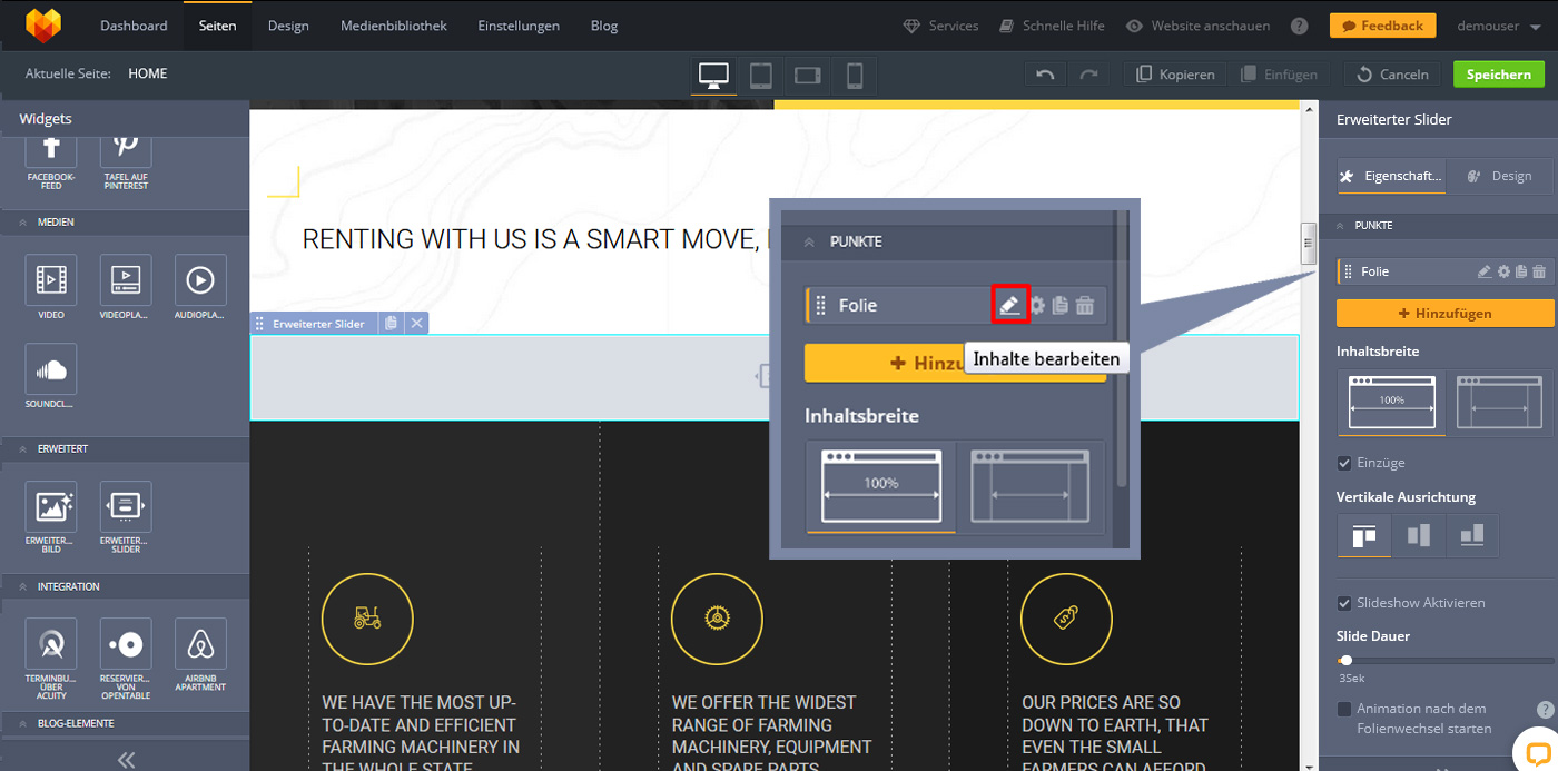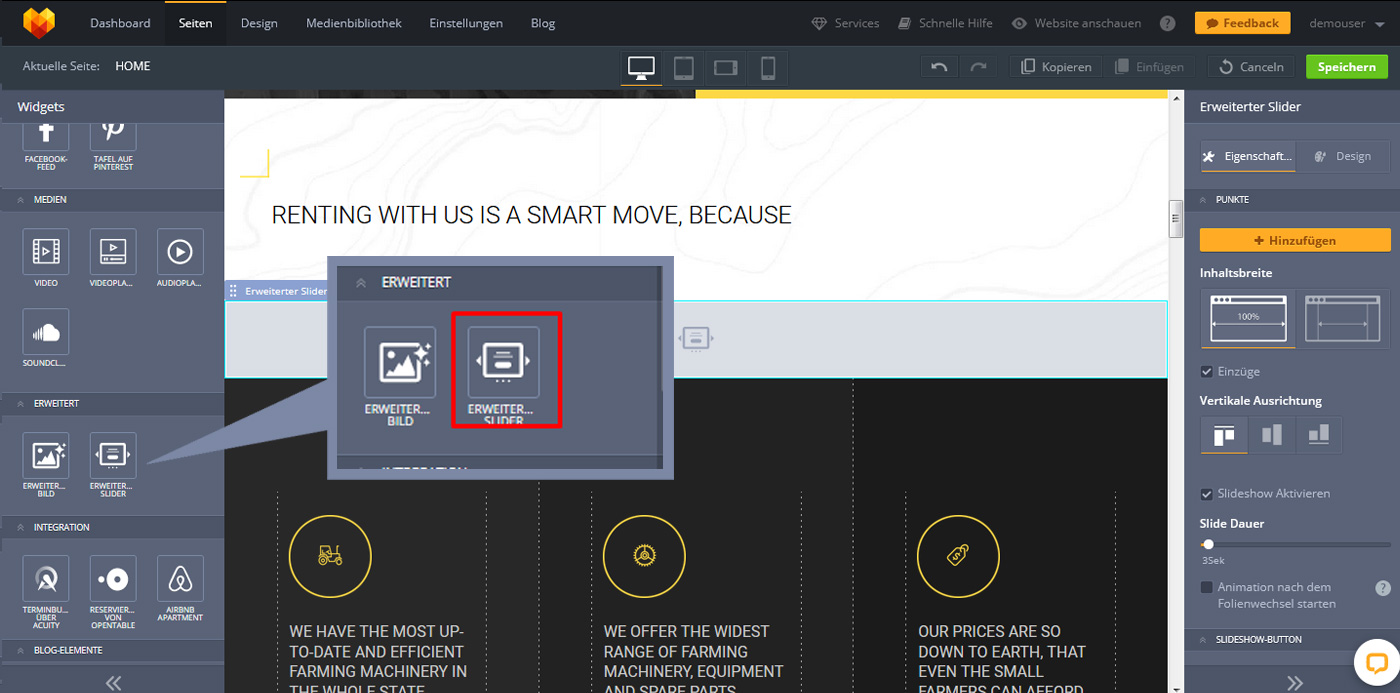 Du kannst zur Folie verschiedene Widgets hinzufügen und somit den Slider kreativer gestalten.