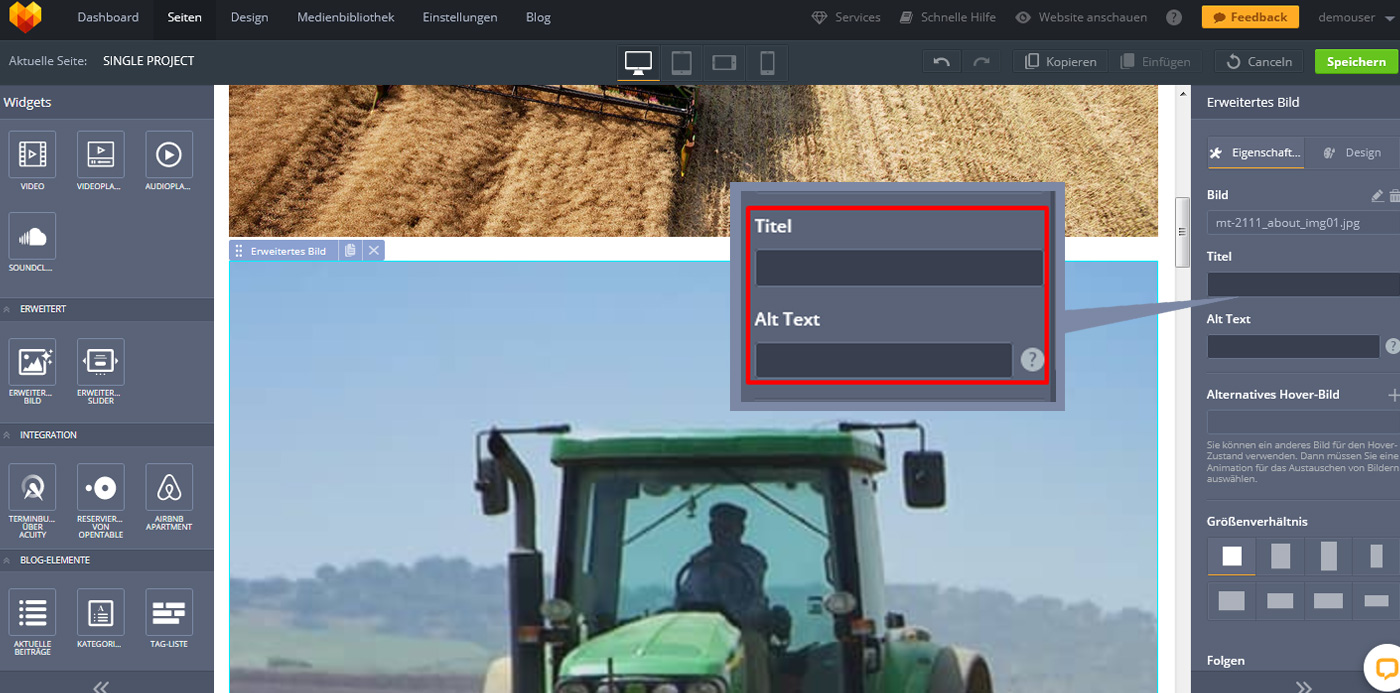 „Titel“ – Diese Option erlaubt dir, den Bildtitel festzulegen. Diese Einstellung ist für die Bilder-SEO von Bedeutung.