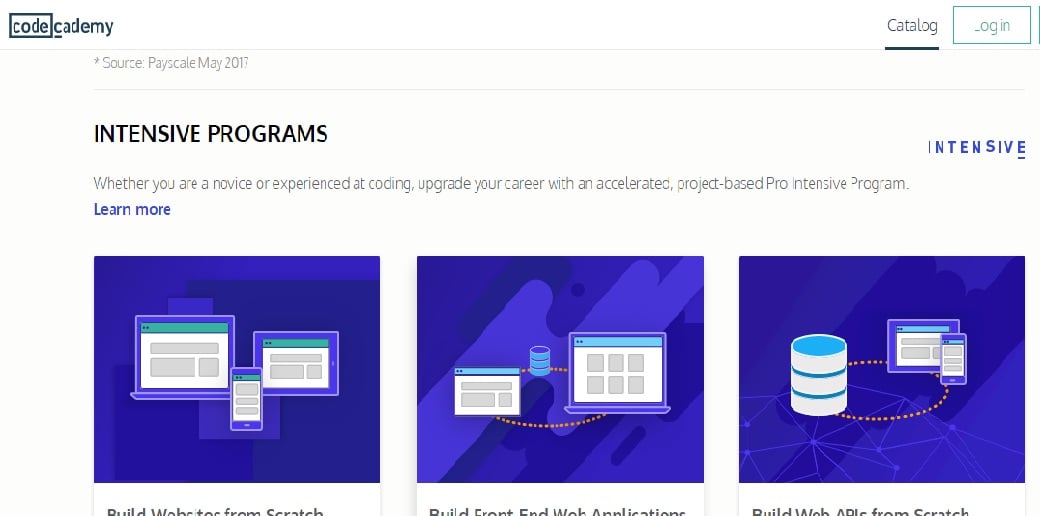 Codecademy gehört zu den bekanntesten Plattformen zum Lernen, die meist kostenlosen Programmierunterricht in vier Sprachen für 12 Programmiersprachen anbietet (darunter Python, PHP, JavaScript und Ruby, wie auch HTML und CSS. Wer noch mehr lernen will, kann auf Codecademy Pro für 19,99 US-Dollar im Monat upgraden. Mit gut verständlichen Übungen wird man Schritt für Schritt an die Materie herangeführt und kann seine Fähigkeiten im jeweiligen Bereich stetig erweitern