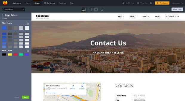 Einer der wichtigsten Gründe Spectrum zu kaufen besteht darin, dass sie euch mit dem eingebauten MotoCMS Control Panel geliefert wird. Dadurch könnt ihr eure eigene Business Website ohne Vorkenntnisse verwalten.