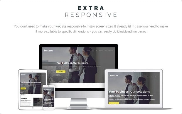 Mobile Geräte sind nicht nur im Geschäftsalltag sondern erst recht im Privatleben nicht mehr wegzudenken. Eine Website, die keine mobile Version hat, hat keine Chance auf Erfolg. Dank dem responsiven Design wird Spectrum auf jedem mobilen Gerät perfekt dargestellt. Eure Website wird sich automatisch an verschiedene Bildschirmauflösungen angepasst, deswegen können alle Nutzer eure Website auch mit mobilen Geräten (Smartphone oder Tablet) besuchen. Wenn es nötig ist, könnt ihr die Größe von der Website anpassen, indem ihr auf den Bereich Größen und Werte in dem Control Panel klickt.