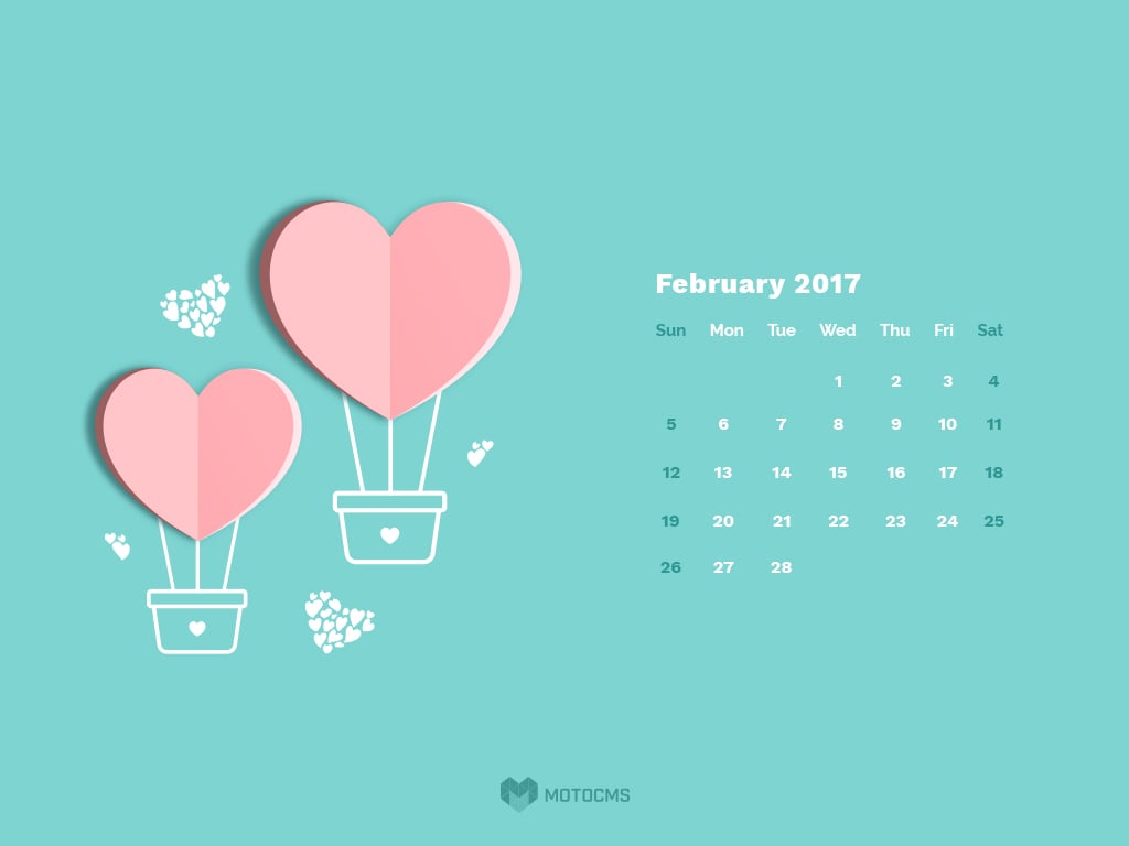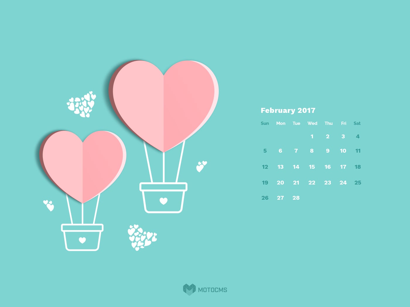 Vergesst nicht, euren Bildschirm auch romantisch zu gestalten! Ladet diesen schönen Valentinstagskalender herunter und stellt ihn als Hintergrundbild eures Desktops ein.
