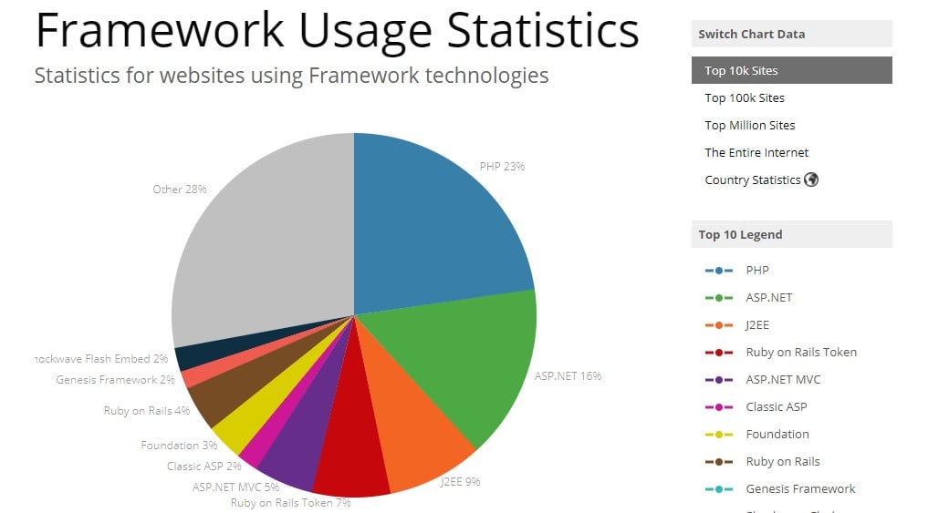 BuiltWith hat eine gute Statistik davon, was die populären Sprachen in der Welt sind: