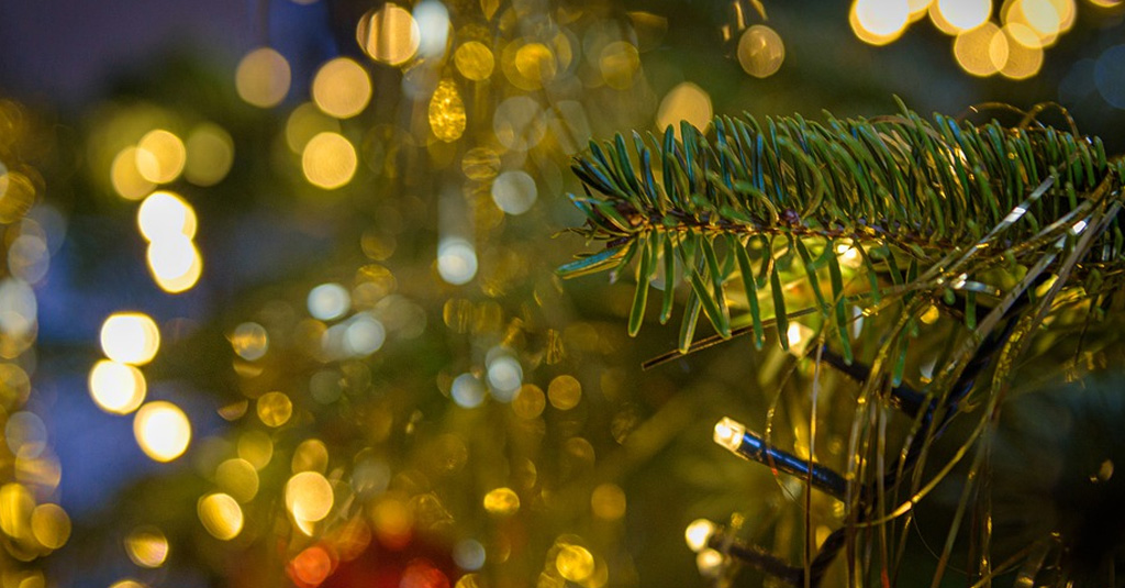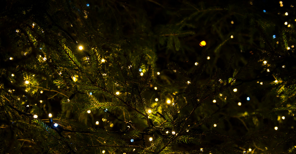 Tannenzweig mit Lichtertraumglanz – Weihnachten-Hintergrund im JPG-Format