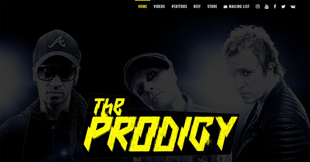 Da das Künstler Portfolio unter anderem als Selbstwerbung anzusehen ist, sollte es mit dem Stil eines Künstlers im Einklang stehen. Wie sieht das in der Praxis aus? Wenn du dir die offizielle Website von The Prodigy (siehe Bild unten) aufrufst, erwartet dich eine Homepage, die grotesk und irgendwie gruselig wirkt. Dieses Design stimmt völlig mit Songs und dem Image dieser Band überein.