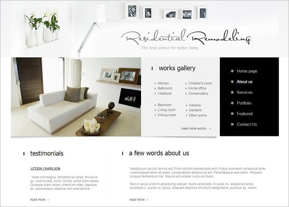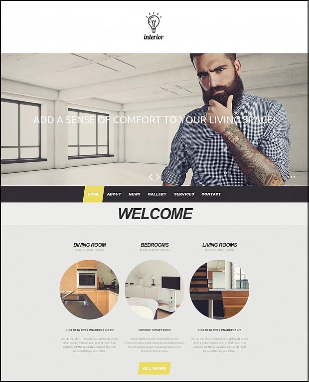 Wie ich schon gesagt habe, darf das Design einer Interieur Website nicht den Inhalt überstrahlen. Es ist der Grund, warum Interieur Homepage-Vorlage meistens hell sind und über ein einfaches Design verfügen. Der minimalistische Stil ist einer der beliebtesten Stile unter Interieur Studios. Er ist modern, erfrischt das gesamte Design und sieht nicht überlastet aus. Die am häufigsten verwendeten Farben für diese Kategorie von Websites sind Weiß, Beige und Grau.