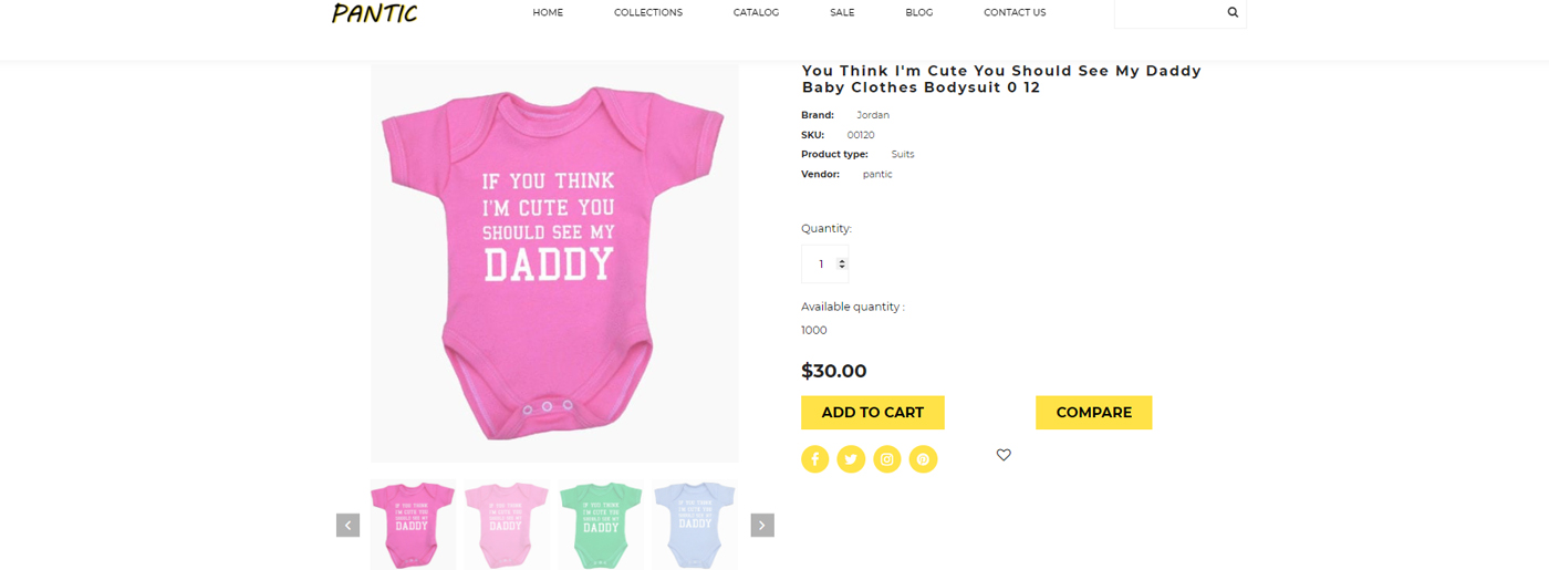 All you need to do is present the essential information in the best possible light and create a user-friendly website. To do this, you should manage the description of your popular products in different catalogs/collections, grouped into specific categories(e.g., Pantic provides Baby Boy, Baby Girl, Baby Neutral, Kid Boy, Kid Girl, Sale, Toddler Girl).