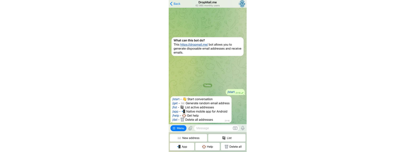 What’s more, DropMail.me is very easy to operate. With just a few taps, you can generate a new email address, receive emails, and even reply—without ever leaving the Telegram app. This is pretty useful for quick sign-ups during online shopping or when you’re snooping around at new services without the resulting spam.