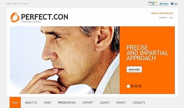 This is a business website template that can be used almost for all purposes. It is designed in light colors with bright orange accents and can be used by consulting and financial companies, stock market brokers and agents, insurance and industrial companies. So now lets examine how the template’s potential can be evoked and enriched.
