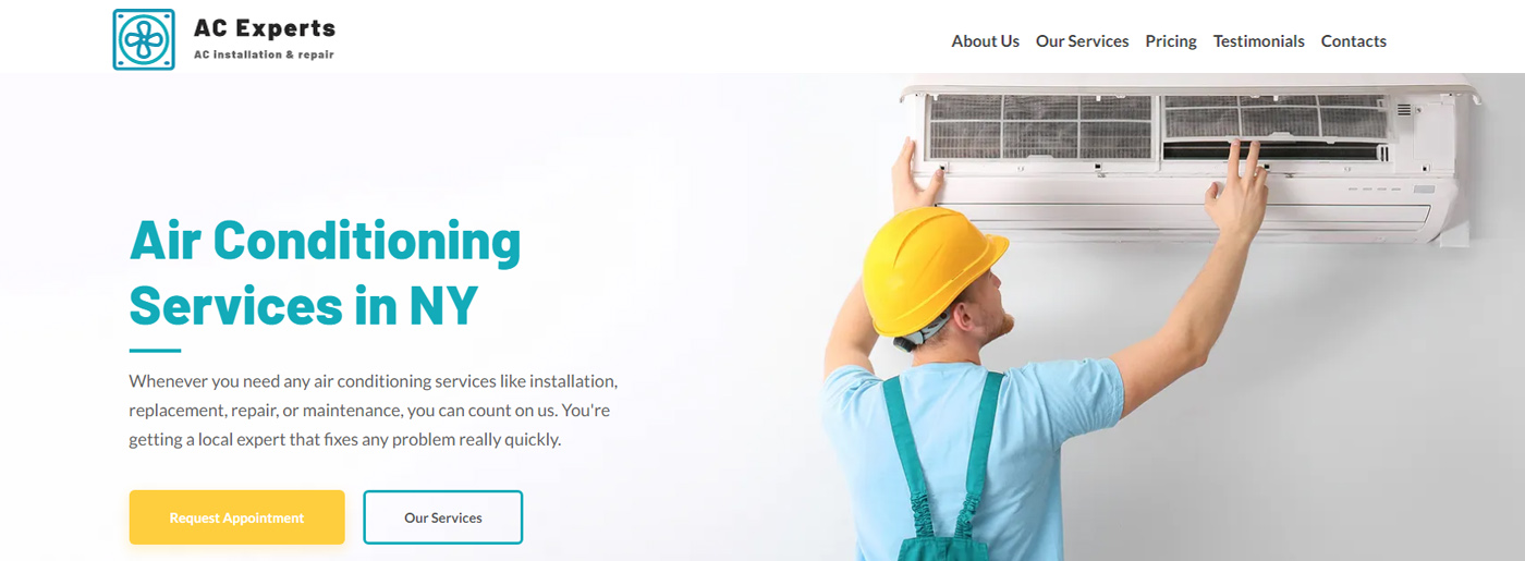 Using convenient blocks illustrating the services(repair, installation, maintenance), this air conditioning website lets visitors understand your offer easily. With its help, you can: