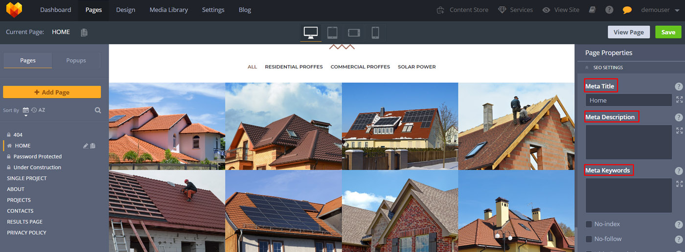 Building your site on a CMS enables you to make changes as and when you feel necessary. There are seasonal peaks and troughs in many service businesses, so you need a website that’s easy to manage and update. The Moto CMS admin panel makes it simple to build various pages, all based on the same template design – swapping them whenever you wish.