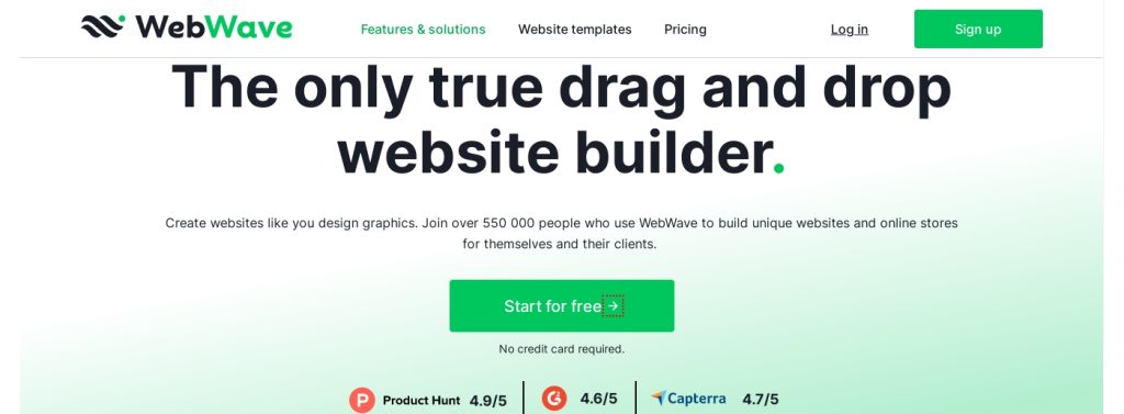 WebWave drag and drop website builder has been extremely popular for years. It is used by thousands of users, creating and developing their websites. At WebWave, we’re all about creative freedom, so we give you a website builder that works like a graphics design tool. You can position elements anywhere on the canvas, work with layers, and create websites featuring a shop, email, SEO, domain, hosting, and more. Create, customize, and launch your site without any barriers.