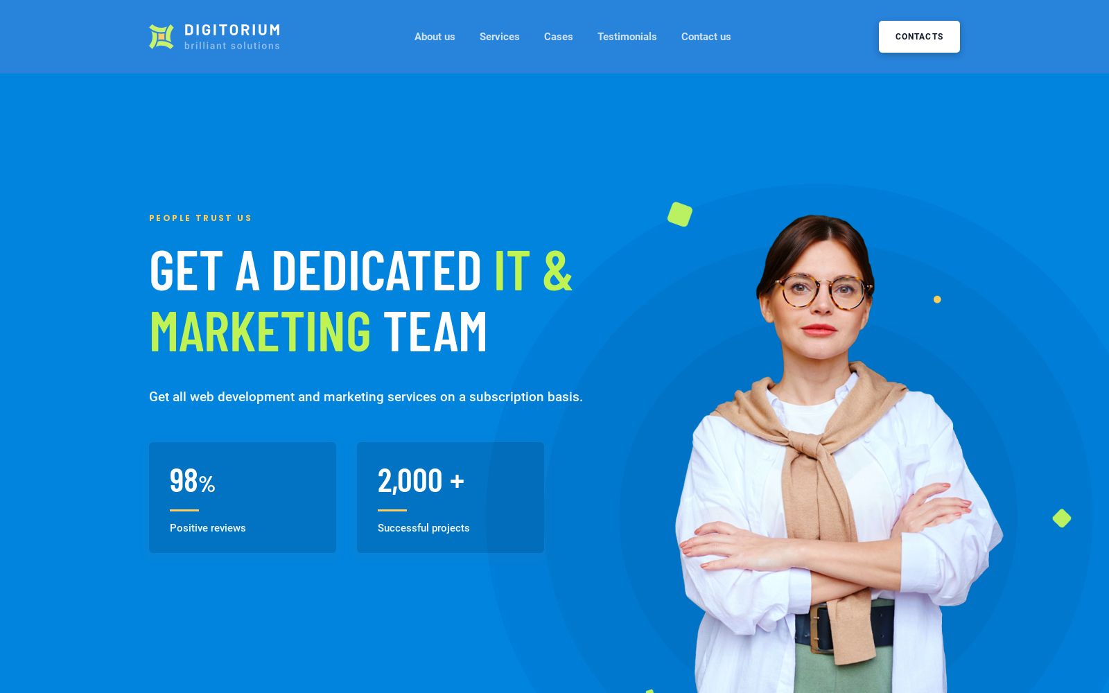 This color combination is realized by determining the main color and use variations of it. The variations are created from the main colors by adding black or white. The schema is efficient when it’s not required to have high contrast and it represents a good solution in the eventuality that is required a modern approach. Many Weblium website templates use monochromatic palettes to give a clean, minimalistic look while ensuring visual consistency.