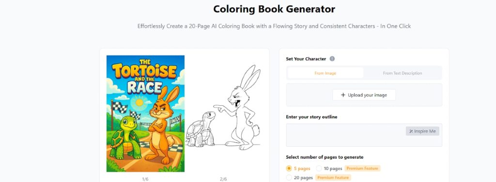 - AI-Based Page Creation: You can create coloring pages and add a text prompt or theme (e.g. space animals or fairy tale castles).