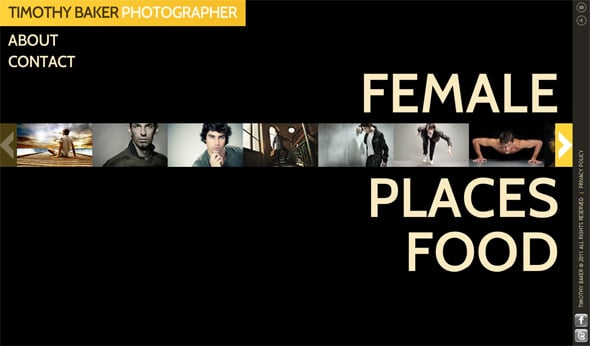 This absolutely black Flash photo portfolio is a great example of minimalist style in web design. Several web pages which are navigated with the accordion style menu are very easy to use and look really attractive. Surely you can create new pages and popups at your liking but there are already created several website sections which are irrepleacablefor photo portfolio websites.