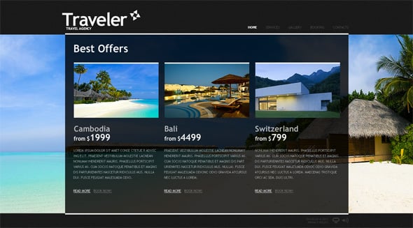 Want to create a travel website? This Flash CMS template combines a strict business style design with a rich functionality of image galleries. It has an interactive image gallery at the top of the splash page. Every image has a short description with a price and a link to the page with more detailed information about the product.