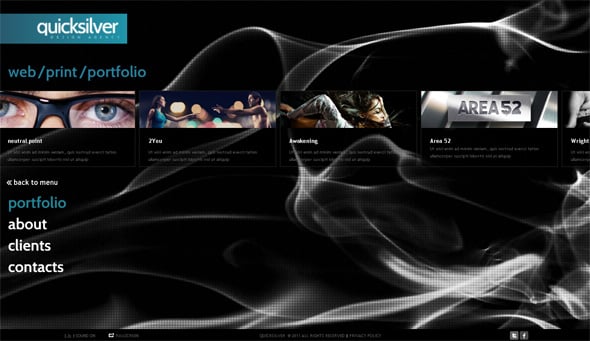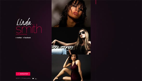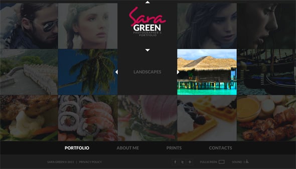 This type of photo portfolio templates is very popular among photographers and web designers. It looks very stylish and it’s very simple in use. All photos’ categories are visible on the home page directly and to browse them you should just hover your mouse pointer over the page.