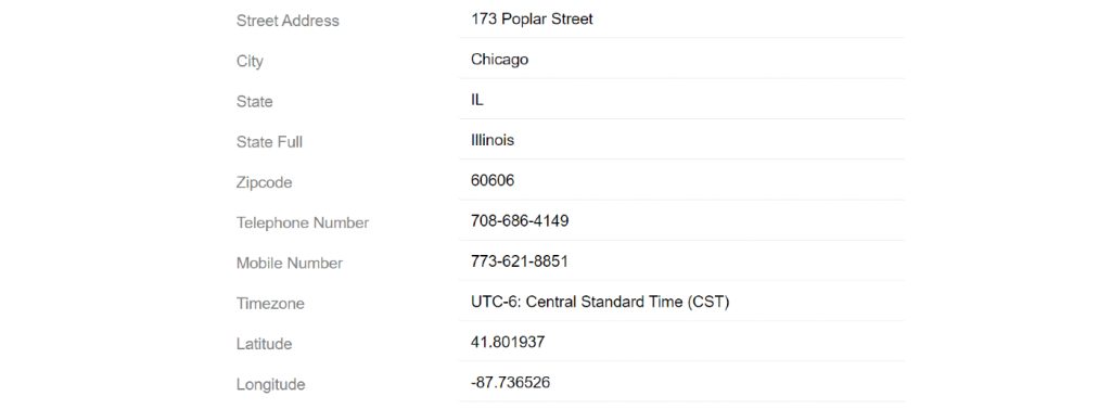 Fake address generator US Chicago goes beyond mere superficial mimicry, employing a sophisticated algorithm that carefully aligns the generated addresses with the geographical and demographic intricacies of the Windy City. Whether you are engaged in application development, software testing, or any other project that requires an authentic Chicago backdrop, the address generator stands out as the go-to solution, providing a level of accuracy and reliability indispensable for any endeavor within the city limits.