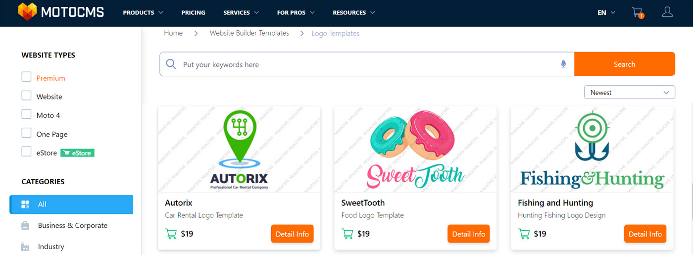 In case you need a logo for a business, MotoCMS can offer you a ready-made design for $19, just choose from our logo templates or get a custom design for $149.