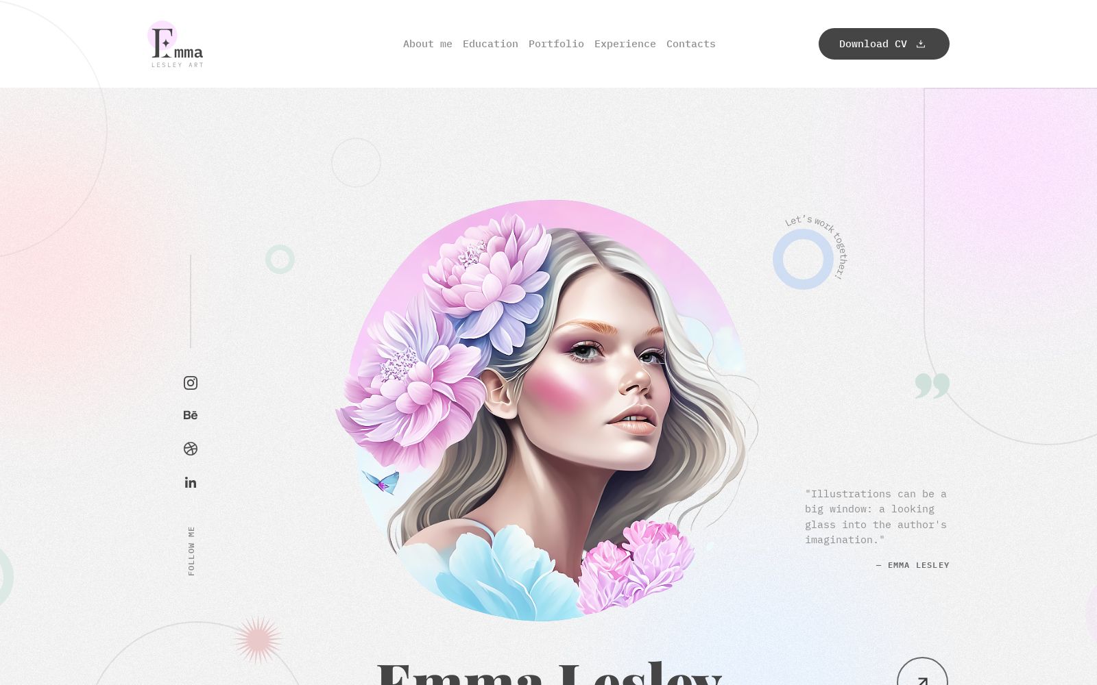 Portfolio showcase on Weblium is ideal for artists and designers. It features illustrations, game art, book covers, and marketing graphics. Includes galleries, resume sections, and options for commissions or hiring. Artistic elements enhance the layout throughout.