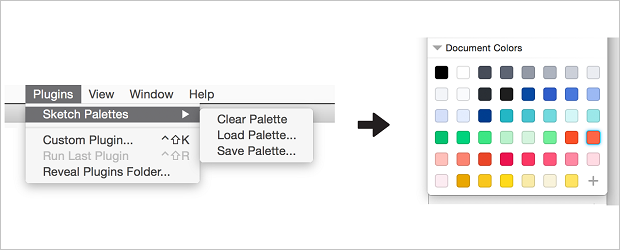You can create and save your own color palettes for the design you choose. Save them from the global Colors section or from the Document colors section. After that you can use your saved palettes for any design project inside Sketch.
