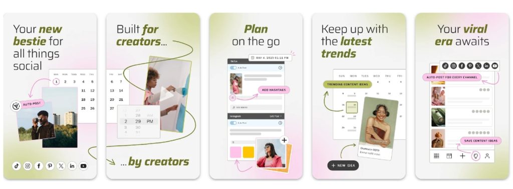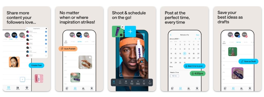 Later is an app that specializes in scheduling and publishing content on Instagram. It allows you to create beautiful grids, schedule posts for specific times, and analyze your pages’ results.