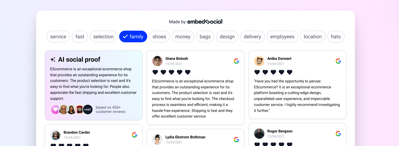 EmbedSocial provides the most robust platform to generate and embed Google reviews on your platform.