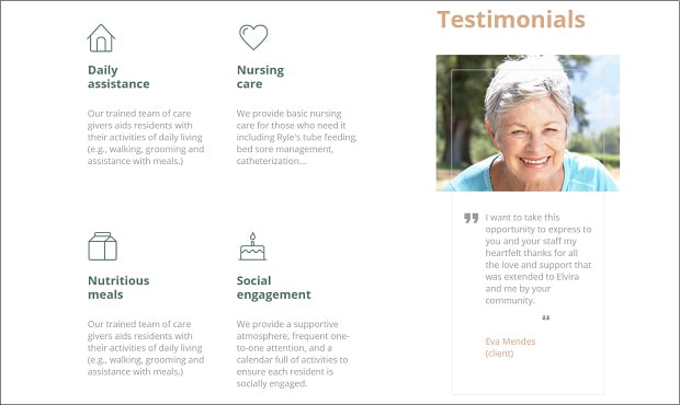 - Don’t feel shy to add testimonials of your grateful clients. It really helps. But your testimonials must be true and honest with exact names and original pictures.