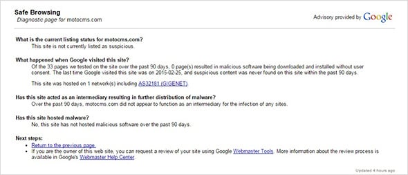 This is nifty tool that gives you a detail record of a website’s malware history for the past 90 days. Usually Safe Browsing alerts webmasters in case their sites have been hacked. Although, if you don’t want to wait you can check everything yourself by opening this URL