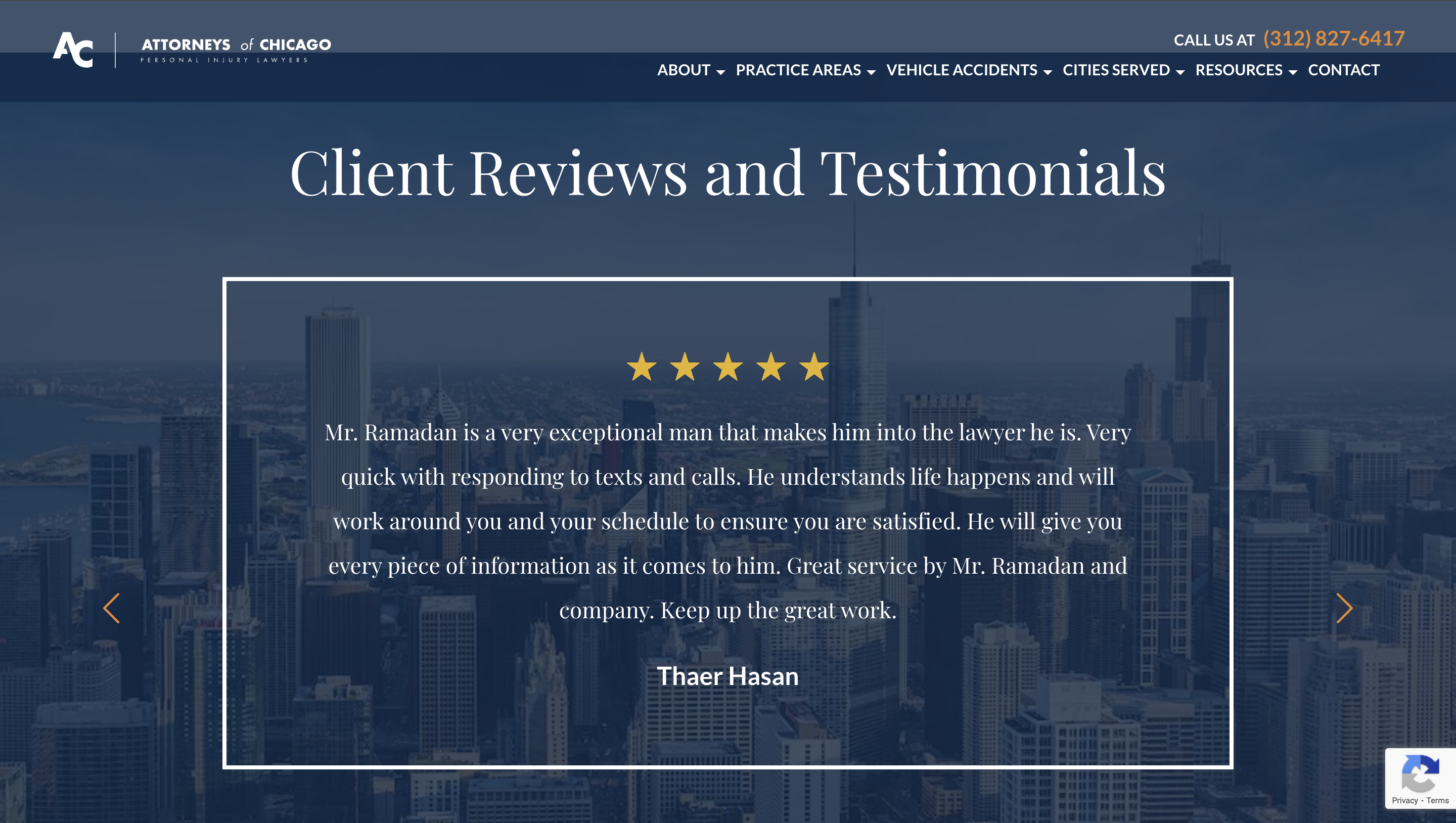 This tactic is used in any industry for any service or product. Attorneys of Chicago highlight their reviews on their website for a good reason. It is what convinces potential clients to contact them. 77% of shoppers specifically seek out websites with ratings and reviews.