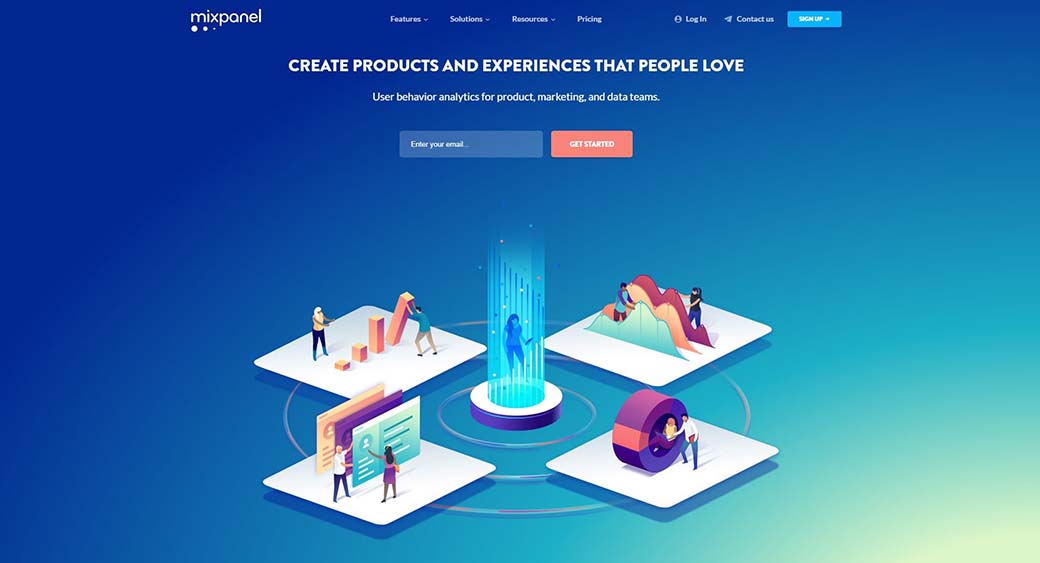 We’ll see more cool background designs diversified with gradient soon. For example, Mixpanel, an analytics company has adopted a gradient background as the main background of their site: