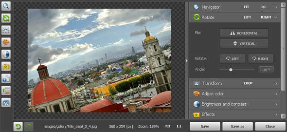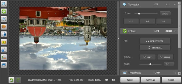 2. We can flip the image horizontally or vertically, rotate it left or right as well as choose the angle of the image view by means of the Rotate options.