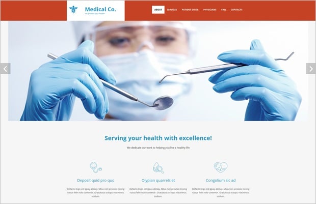 - Templates for various categories including business, consulting, photo portfolio, architecture and medical websites.