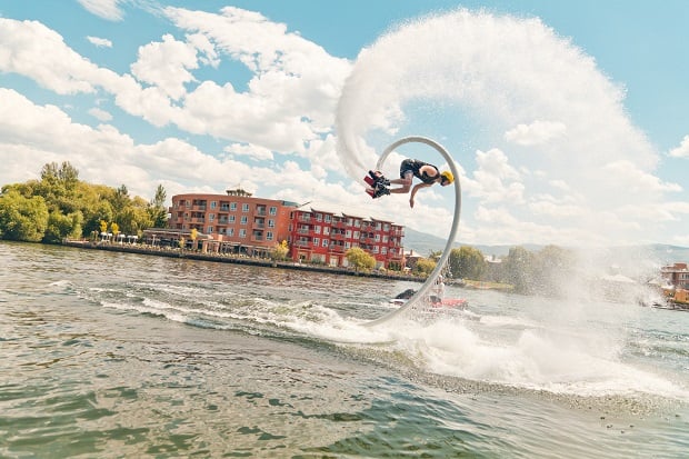 Devon: My name is Devon Spittle and I’m the owner of Okanagan Flyboard. We offer our customers a chance to experience something fun, new, and potentially extreme! It’s called Flyboarding, and we always tell people “If you can stand, you can fly.”
