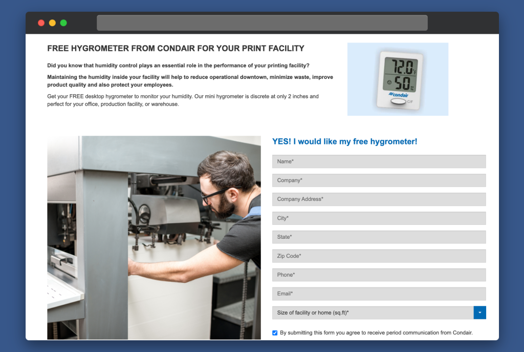Condair keeps the form focused but not exhausting, asking just enough to nurture the lead while respecting visitors’ time and exchanging value.