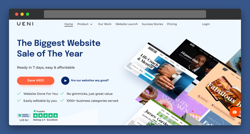 UENI shows less is more by trading overwrought graphics or distracting details for singular elements fine-tuned to drive action. Marketers should note how UENI guides visitors by completely catering copy and visuals around anticipating the offer. They also make visitors feel supported by incorporating a live chat.