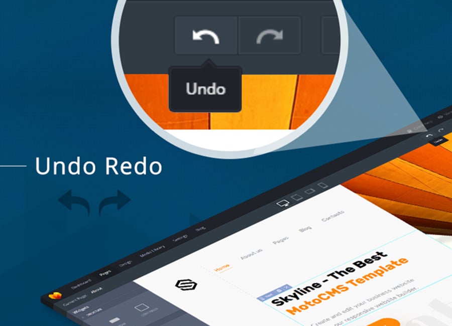 Undo and redo commands are vital for working with text documents and graphic files the way we’re used to. However, we often take this functionality for granted and don’t even think that undo-redo functionality is not that simple in terms of implementation. Fortunately, with its 3.1.6 release, MotoCMS brings you this much-needed functionality and provides for multiple linear undos and redos. We hope you enjoy this freedom of traveling in time when editing your MotoCMS 3 theme.