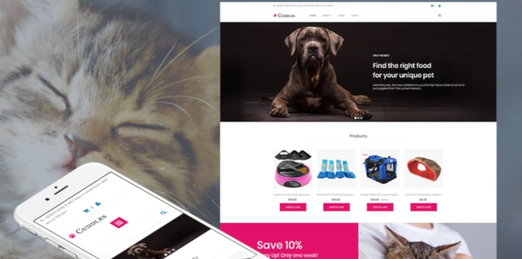 What makes this pet store website template for pets supplies and accessories user-friendly is its powerful store search and filters. Once your prospective customers try the search, they will be amazed by the speed of your website and its impressive product catalog.