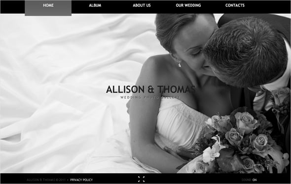 This attractive wedding album with an impressive layout and stunning visual effects will definitely become an excellent solution for your Special Day website. Black-and-white layout, transitional effects and great textures used in the template’s design make the solution really stunning.