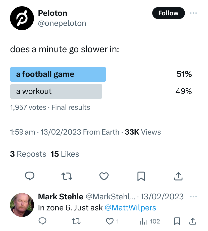 See how Peloton engages its X (formerly Twitter) followers using a poll: