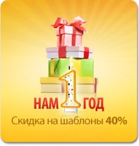 А еще, по доброй традиции, мы приготовили для всех наши клиентов, существующих и потенциальных, приятный сюрприз – 40% скидка на все без исключения шаблоны в нашем магазине. Торопитесь, аттракцион невиданной щедрости продлится всего неделю.