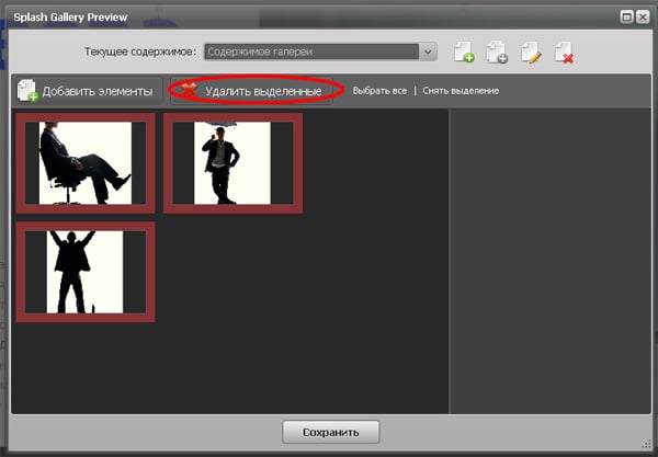 Меняем изображения. Выделяем существующие изображения и нажимает «Удалить выделенные».