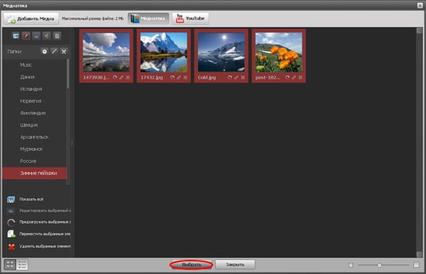 Подтверждаем удаление и нажимаем кнопку «Добавить элементы». В Медиатеке выбираем необходимые изображения и нажимаем «Выбрать».