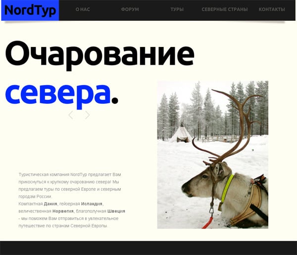 Готовый результат можно посмотреть здесь: Сайт компании NordТур.